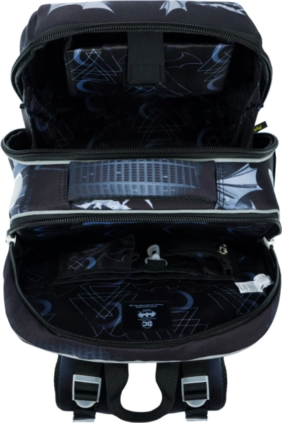 Ľahká a stabilná školská aktovka pre prvákov aj malých školákov s motívom BATMAN Dark City. Ponúka pevné vystužené telo pre maximálnu ochranu zošitov, dvojkomorové usporiadanie pre prehľadné nosenie, priedušný chrbát so systémom Air Ergo Adjustable a reflexné prvky pre bezpečnosť. Nízka hmotnosť len 1000 g, objem 23 l a praktický organizér pre všetko potrebné do školy.