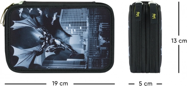 Vnútorné gumičky sú pevné a pružné, takže bezpečne udržia aj silné trojhranné pastelky, fixky či zvýrazňovače. Súčasťou je tiež malé vrecko na mince, gumy alebo ďalšie drobnosti. Odolný textilný materiál a kvalitné zipsy zaistia dlhú životnosť a atraktívny vzhľad s motívom BATMAN poteší každého fanúšika.