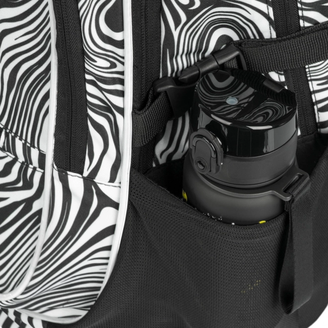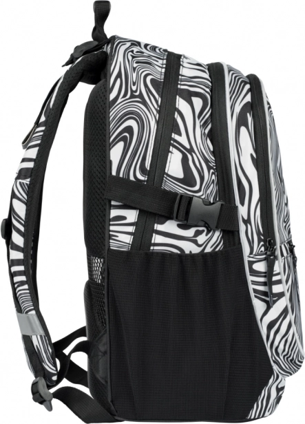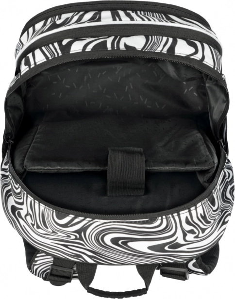 Štýlový školský batoh BAAGL Core Mixture s čiernobielym vzorom ponúka ergonomický chrbát, nízku hmotnosť 900 g a tri komory s organizérom a vreckom na 15" notebook. Vďaka plne nastaviteľným popruhom, bočným vreckám na fľašu, vodoodolnému materiálu a reflexným prvkom je ideálny na každodenné nosenie do školy.