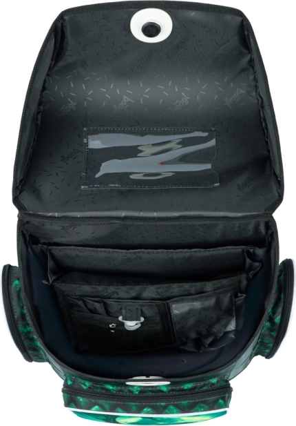 Šikovné Fidlock magnetické zapínanie sa otvára jednoduchým pootočením a samo sa zavrie, takže deti aktovku ľahko a bezpečne ovládnu. Vnútri nechýba organizér pre rovnomerné rozloženie hmotnosti a priehľadné vrecko s rozvrhom pre lepšiu orientáciu. Izolované predné vrecko ochráni desiatu, dve bočné vrecká sú ideálne na fľašu na pitie.