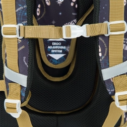 Posuvný chrbtový systém a ergonomicky tvarovaný chrbát zaistia správne nastavenie podľa výšky a postavy dieťaťa. Komfort dopĺňajú nastaviteľné ramenné, hrudné a bočné kompresné popruhy.