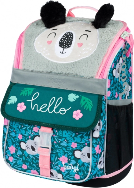 Odolné vodeodolné materiály a stabilné dno udržia aktovku v tvare aj v stoji. Reflexné prvky zvyšujú viditeľnosť dieťaťa, hravý koala dizajn s chlpatým príveskom poteší každý školský deň.