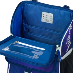 Nové výklopné otváranie umožní deťom rýchly prístup k pomôckam priamo z lavice. Vo vnútri nechýba priehľadné vrecko na rozvrh a premyslený organizér s gumičkou na fixáciu zošitov a učebníc. Bočné vrecká z pevnej sieťoviny pojmú fľašu na pitie, zatiaľ čo izolované priestranné predné vrecko s prackou ochráni desiatu.