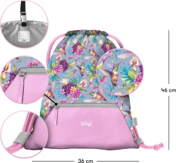 Praktické športové vrecúško Baagl s motívom kolibríka je ideálne na prezuvky, obuv aj voľnočasové aktivity. Má odolný umývateľný materiál, praktické predné vrecko na zips a pevné šnúrky pre ľahké nosenie na chrbte. Vďaka karabínke ho jednoducho pripnete k aktovke.