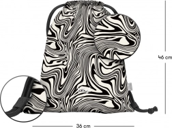 Tento praktický vak je vyrobený z pevného umývateľného materiálu a jeho elegantný čiernobiely psychedelický dizajn upúta pozornosť každého. Zatváranie je riešené pomocou pevných šnúrok, ktoré zároveň slúžia ako pohodlné popruhy na nosenie na chrbte.