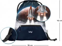 Vrecko na obuv Space Shuttle je vyrobené z pevného umývateľného materiálu, má praktickú kapsičku na zips a karabinku na pripnutie napríklad na aktovku. Nosené pohodlne na chrbte vďaka pevným tkanicám.