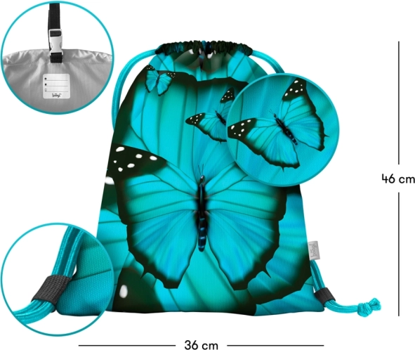 Estetický dizajn s detailmi motýľa, ktorý zaujme na prvý pohľad. Nosí sa ľahko vďaka popruhom, ktoré slúžia aj ako držadlá.
