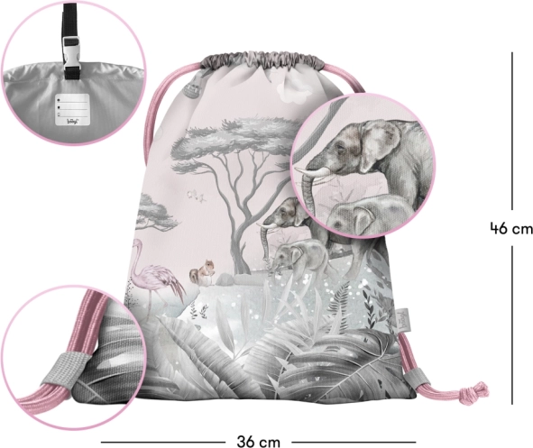 Vrecko BAAGL Safari je skvelým riešením pre každodenné použitie. Poskytuje dostatok priestoru na nosenie obuvi alebo iných drobností a jeho praktická konštrukcia zaručuje, že sa zmestí kamkoľvek. Vďaka karabínke ho ľahko pripevníte na aktovku alebo batoh.