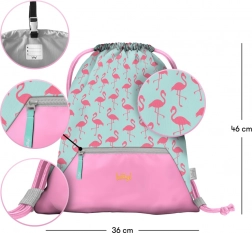 Toto vrecúško na chrbát od BAAGL je nielen štýlové, ale aj veľmi praktické. Disponuje zdravým dizajnom s plameniakovým motívom a praktickými prvkami: