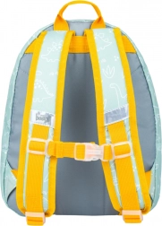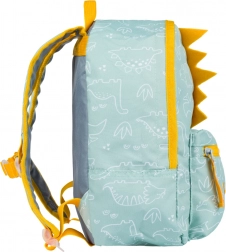 Výrazný tyrkysový batoh s veselou dinosaurou potlačou a hravými detailmi zaujme na prvý pohľad a podporí radosť z každodenného nosenia.