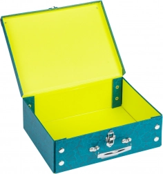 Pevný laminovaný papier, okované rohy a kovová pracka chránia kufrík pred nárazmi a každodenným opotrebovaním.