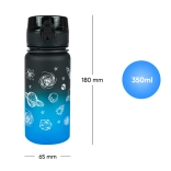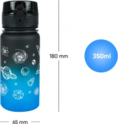 Táto tritánová fľaša BAAGL s objemom 350 ml v atraktívnom gradiente od čiernej po modrú je spoľahlivým parťákom pre každodenný pitný režim. Uzamykateľné viečko bráni nechcenému vytiekaniu a umožňuje rýchle, intuitívne otvorenie jednou rukou. Vďaka integrovanému situ si vychutnáte vodu s ovocím aj sypané čaje – materiál je vhodný aj na horúce nápoje.