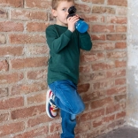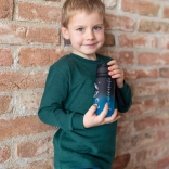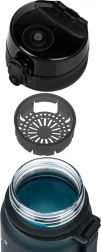 Viečko s tlačidlom na rýchle otvorenie bráni pretekaniu v batohu a umožňuje pohodlné pitie jednou rukou – ideálne do školy aj na šport.