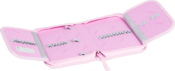 Dvojchlopňový peračník (bez náplne) s pevným zipsom a vrecko z umývateľného materiálu s karabínkou a spodným vreckom na zips – všetko v jednotnom dizajne Rainbow Unicorn.