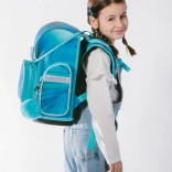 Školská aktovka má ergonomicky tvarovaný chrbát, nastaviteľné popruhy a je ľahká, čo zaisťuje pohodlie a bezpečnosť dieťaťa.