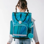 Peračník ponúka klasické usporiadanie s dvoma chlopňami a kvalitným zipsom. Vrecko s motívom motýľa je skvelé na prezuvky alebo iné drobnosti a dá sa jednoducho pripnúť k aktovke. Praktický box na desiatu je ideálny na uloženie obeda, zatiaľ čo ochranné dosky na zošity A4 zaistia, že dokumenty zostanú v poriadku.