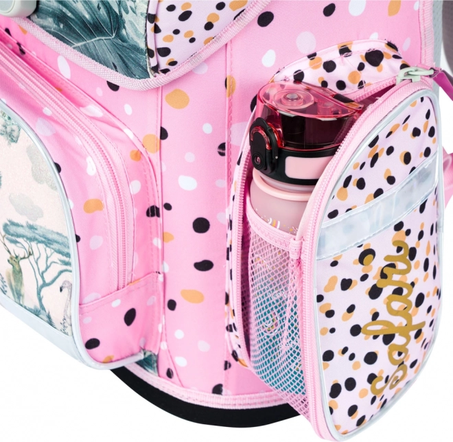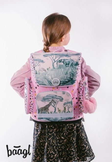 Sada BAAGL Safari je ideálnym riešením pre deti, ktoré potrebujú štýlové a funkčné školské potreby. Ergonomická aktovka je vyrobená s ohľadom na zdravie chrbta detí, ponúka posuvný zadný systém a ergonomicky tvarovaný chrbát. Aktovka má nízku hmotnosť a objem 19 l, čo zaisťuje dostatok miesta pre všetky učebnice.
