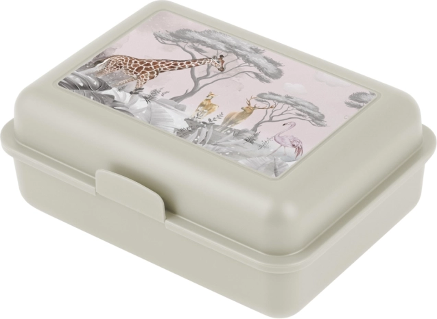 Box na desiatu ponúka bezpečné uchovávanie jedla, s praktickým zámkom a deliacou priečkou. Všetky produkty sú ozdobené trendy motívom Safari, kde sa miešajú pastelové farby s pútavými ilustráciami.