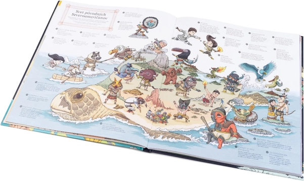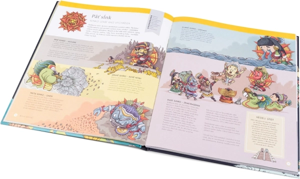 Vydajte sa na cestu naprieč mýtmi dvanástich prastarých kultúr. Tento pôsobivý atlas ukazuje, ako si jednotlivé civilizácie predstavovali svet – ako strom života, obrátenú horu či zem nesenú obrovskou korytnačkou. Ponorte sa do legiend pôvodných obyvateľov Severnej Ameriky, Aztékov, Janomamov, Grékov, Írov, Seveďanov aj Slovanov, ale tiež do príbehov jorubskej Afriky, starovekého Egypta, hinduistických a japonských tradícií a polynézskych kultúr.