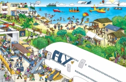 Táto veľkoformátová obrázková kniha vtiahne deti do rušného sveta letiska. Na každej dvojstrane nájdu množstvo veselých postavičiek, situácií a mini príbehov – od registrácie batožiny cez bezpečnostnú kontrolu až po nástup do lietadla a prílet do cieľa. Ideálne na spoločné prezeranie a rozprávanie.