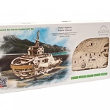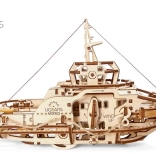 Tento detailne prepracovaný remorkér od UGEARS sa skladá zo 169 laserom vyrezaných dielikov z kvalitnej preglejky. Diely ľahko vytlačíte z dosiek a spojíte bez lepidla či špeciálneho náradia – stačí sa riadiť priloženým návodom. Model je poháňaný pružným gumeným motorom, prevodmi a kyvadlom, ktoré zabezpečujú plynulý a autentický pohyb.