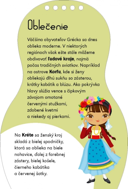Tento titul z obľúbenej série ponúka malým tvorcom možnosť objavovať Grécko pomocou bábiky Eleny. Vďaka kreatívnym omaľovánkam a bohatej zbierke samolepiek môžu deti vytvárať nespočetné modely. Kniha navyše poskytuje zaujímavé informácie o gréckej kultúre, tradíciách a zvykoch, ako je napr. pozdrav a tradičné jedlá.