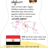 - Vzdelávacie aspekty: Deti sa dozvedia, ako sa v Egypte zdraví a učí, a aké miestne špeciality tamojšie deti preferujú.