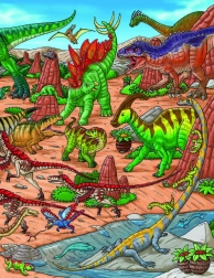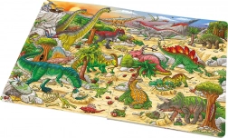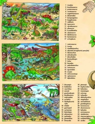 Na každej stránke nájdete detailné, krásne farebné ilustrácie plné pravekých tvorov a zábavné úlohy na postreh: niektoré jaštery treba znova a znova hľadať. Kniha je písaná zrozumiteľne pre deti a na konci ponúka kompletný zoznam názvov zobrazených dinosaurov.