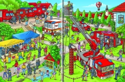 Táto veľká obrázková kniha zavedie deti do ruchu hasičskej stanice aj priamo k zásahom. Od obliekania výstroja a nasadzovania prilieb, cez rozvinutie hadíc, vysunutie dlhého rebríka až po samotné hasenie ohňa – každý krok je názorne a zrozumiteľne vyobrazený. Deti sa tak naučia, ako hasiči odvážne chránia životy a ako spolupracujú ako tím.