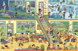 Veľká obrázková knižka zavedie deti do rušného sveta materskej školy – od ranného príchodu s rodičmi až po popoludňajší oddych a cestu na ihrisko. Na každej stránke nájdete množstvo detailov, ktoré podnecujú k rozprávaniu, pomenúvaniu a hľadaniu. Kniha skvele podporuje komunikáciu, všímavosť a rozširuje slovnú zásobu predškolákov.