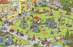 - Témy blízke deťom: deň v škôlke, kamaráti, hry, vonkajšie aktivity a zvieratká.