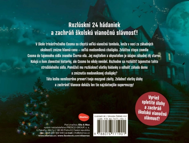 Napínavá knižná úniková hra pre deti od približne 10 rokov: Cosmo a jeho kamaráti musia vyriešiť 24 chytľavých hádaniek, aby odhalili tajomstvo čiernej vily a našli zmiznutú hlavnú cenu vianočnej tomboly – perníkovú chalúpku. Ideálne na rodinné lúštenie, rozvoj logického myslenia a zábavu počas Vianoc.