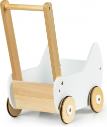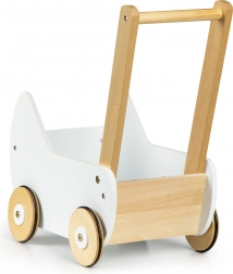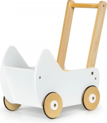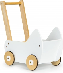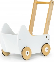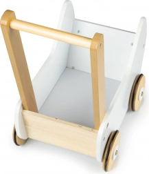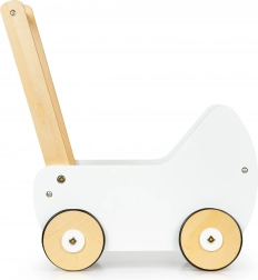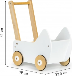 Drevený kočík ECOTOYS ponúka skvelú zábavu pre každé dievčatko, ktoré sa rado stará o svoje bábiky a plyšákov. Kočík umožňuje hrať sa na mamu a rozvíja detskú predstavivosť. Protišmykové gumové pásiky na kolesách chránia podlahu pred poškriabaním.