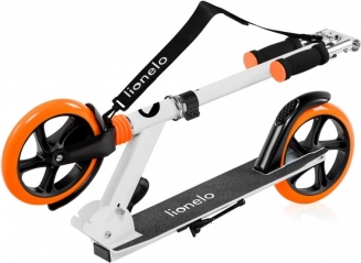 Mestská kolobežka Lionelo Luca White Orange kombinuje ľahkú hliníkovú konštrukciu, veľké PU kolesá 200 mm, nastaviteľné riadidlá v 3 stupňoch a nosnosť až 100 kg. Ponúka plynulú jazdu vďaka ložiskám ABEC-7, bezpečné zadné blatníkové brzdy, protišmykový deck a praktické skladanie s popruhom na prenášanie a stojanček.