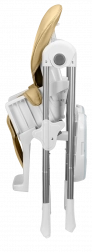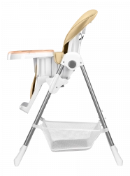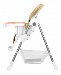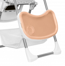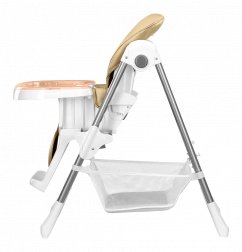 Bezpečnosť zaisťujú päťbodové pásy, zosilnená konštrukcia a protišmykové podložky. Praktické detaily ako odnímateľná opierka nôh, veľký kôš na hračky a doplnky či kolieska na presun uľahčia každodenné používanie. Po skončení jedla stoličku behom pár sekúnd zložíte na úspornú šírku približne 30 cm.