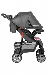 Bezstupňová regulácia operadla a nastaviteľná opierka nôh umožnia dieťaťu oddych aj spánok v ergonomickej polohe počas prechádzky.
