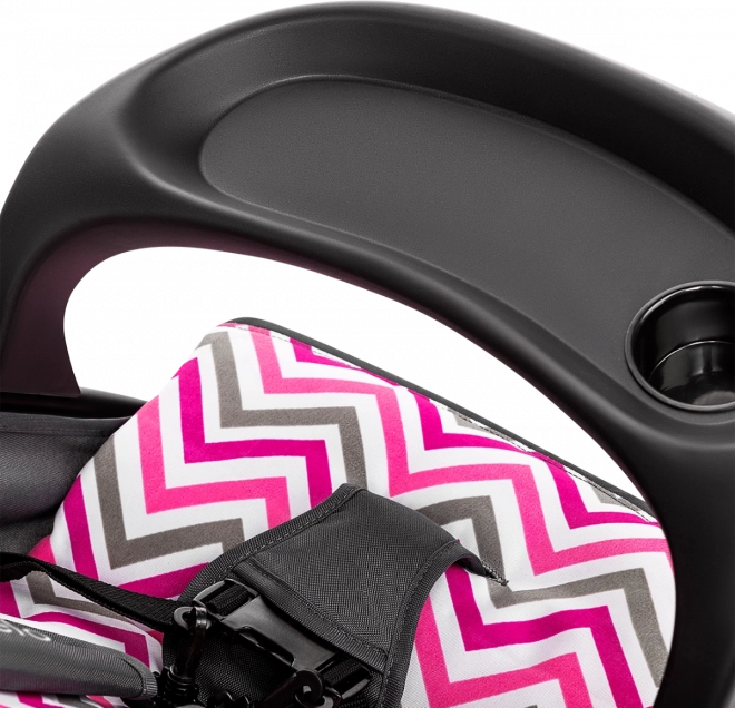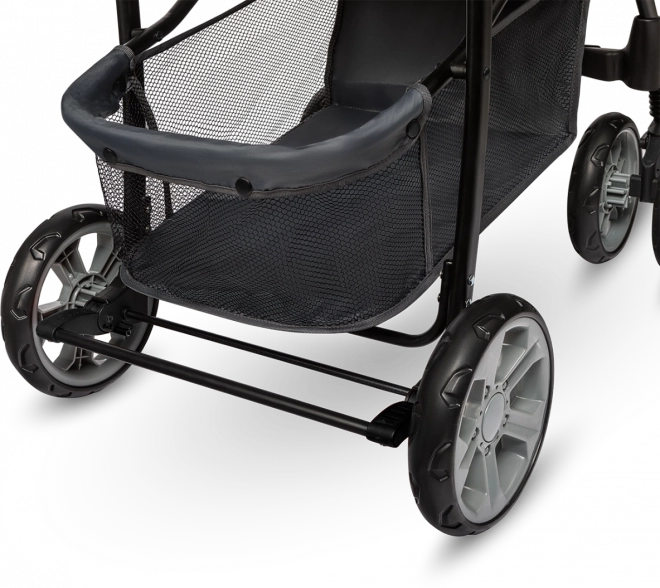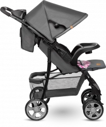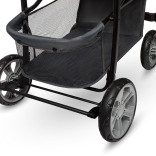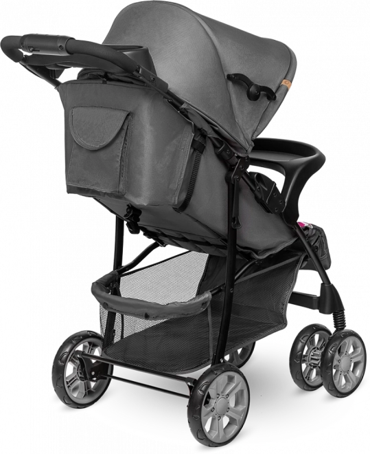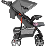 Bezpečnosť je prioritou: päťbodové pásy s mäkkými chráničmi, bariérka s táckou a držiakom pohára a testovanie podľa normy EN 1888 (laboratórium SGS) dávajú istotu pri každodennom používaní. Obratné EVA kolesá s mäkkým odpružením prednej nápravy tlmia nerovnosti, ľahko prejdú mestom a ich uzamknutie pre jazdu rovno drží stabilný smer na dlažbe.