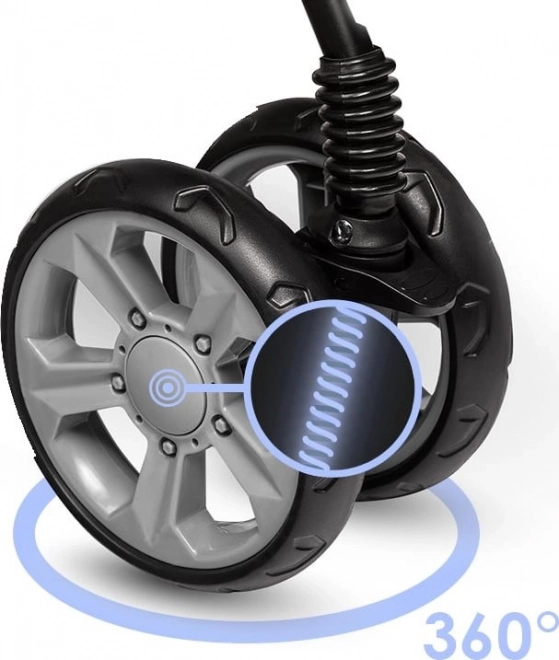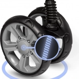 Odolné penové kolesá EVA zvládnu mestské nástrahy. Predné kolesá s mäkkým odpružením tlmia otrasy a umožňujú blokáciu pre priamu jazdu.