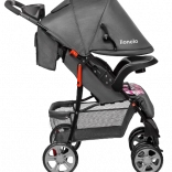 Ľahký a obratný športový kočík Lionelo Emma Plus ponúka pohodlie a bezpečie pre deti od 6 mesiacov do cca 3 rokov. Vďaka plynulej regulácii operadla až do ľahu, nastaviteľnej opierke nôh a rozkladacej strieške si dieťa užije každú jazdu. Praktická tácková bariérka s držiakom nápoja, organizér pri rukoväti a priestranný košík uľahčia každý výlet. Kolesá z odolnej EVA peny s možnosťou blokácie priameho smeru a päťbodové pásy zabezpečujú bezpečnosť a komfort.