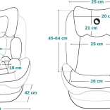 Pre vyššiu bezpečnosť je sedačka vybavená 5-bodovým pásom s mäkkými polstrami a bočnou ochranou z PP a EPS pre efektívnu absorpciu energie pri náraze. 7-stupňové nastavenie opierky hlavy a 4 polohy sklonu sa postarajú o ergonómiu a pohodlie v každej fáze rastu. Odnímateľný poťah možno jednoducho prať, takže údržba je rýchla a bez starostí.