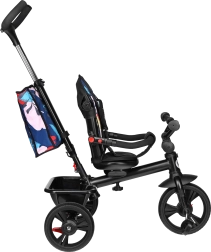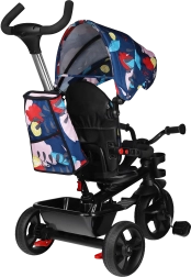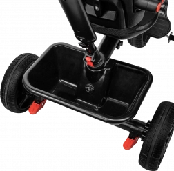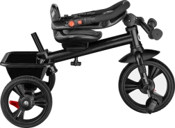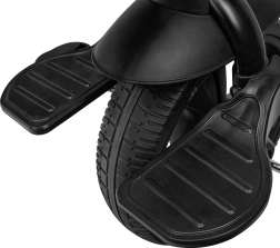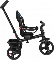 Pre maximálnu bezpečnosť je trojkolka vybavená 3-bodovými pásmi, madlom pre deti, reflexnými prvkami a dvojitou brzdou na zadných kolesách. Rodič ocení výškovo nastaviteľnú rukoväť, jednoduché zloženie do kompaktnej veľkosti a praktické príslušenstvo – košík, tašku a držiak na fľašu.