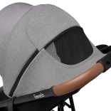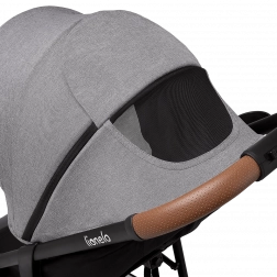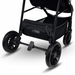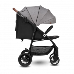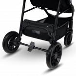 Kočík myslí na rodičov aj detaily: rýchle skladanie so zámkom pre bezpečný transport, veľký nákupný kôš, rukoväť z eko-kože pre príjemný úchop a praktické príslušenstvo ako moskytiéra skrytá v opierke nôh a držiak na nápoje. Reflexné prvky zvyšujú viditeľnosť za šera, 5-bodové pásy s dvoma výškovými úrovňami zas zabezpečujú bezpečné pripútanie rastúceho dieťaťa.