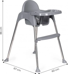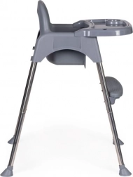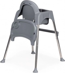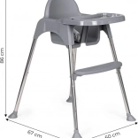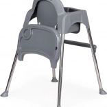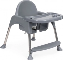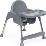 Vďaka šikovnému riešeniu ľahko prestavíte vysokú stoličku na nižšie kresielko – jednoducho odskrutkujete časť nôh a podnožku. Hodí sa nielen na kŕmenie, ale aj ako bezpečné miesto na maľovanie a tvorenie bez obáv zo zašpinenia okolia. Kovové nohy s protišmykovými pätkami chránia podlahu a zabezpečujú stabilitu, 3-bodové pásy a blokáda proti zosunutiu zvyšujú bezpečie.