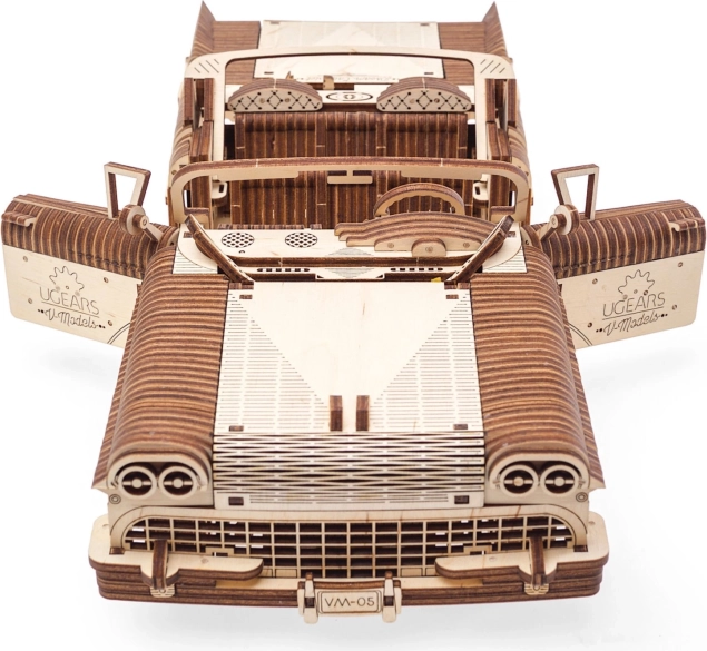 Užite si stavbu aj jazdu s kabrioletom VM-05 – pôsobivým 3D mechanickým modelom, ktorý verne zobrazuje eleganciu veteránov a premyslenú mechaniku. Po zostavení sledujte pohyb piestov V8 aj chladiaceho ventilátora, riaďte voz volantem a aktivujte naťahovací mechanizmus pre plynulú jazdu vpred aj so zaradenou spiatočkou.