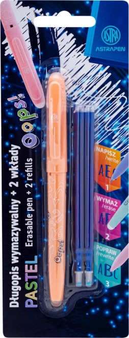 Objavte pohodlné písanie bez škrtania s gumovacím perom Astra Oops. Špeciálny atrament možno ľahko vymazať pomocou gumovacích zakončení na oboch stranách, takže každú chybu opravíte v okamihu. Vďaka ergonomickému úchopu a protišmykovému plastu pero dobre sedí v ruke a zabezpečuje čistý, čitateľný text.