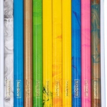 Ergonomický trojhranný tvar podporuje správne držanie písacích potrieb a znižuje únavu ruky. Pastelky sú navrhnuté tak, aby neprášili, nezašpinili a poskytli rovnomerné krytie bez rozmazávania.