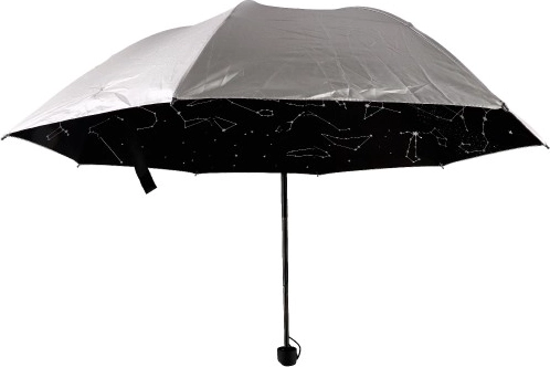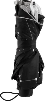 Objavte praktický a elegantný doplnok do daždivých dní. Tento skladací dáždnik zaujme strieborným povrchom a vnútornou oblohou posiatou súhvezdiami, ktorá dodá vašim cestám osobitý štýl. Ľahká konštrukcia a pohodlné pútko uľahčia prenášanie aj skladovanie.