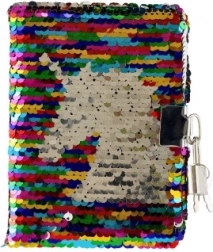 Štýlový tajný denník s obojstrannými flitrami, ktoré po prejdení menia vzhľad a farby. Pre väčšie súkromie má denník kovový zámok s kľúčikmi, vo vnútri sú čisté, nelinkované stránky na písanie aj kreslenie. Kompaktné rozmery 11 × 15 × 2 cm z neho robia ideálny doplnok do školy aj na cesty. Dodávame mix motívov a farieb podľa skladovej dostupnosti.