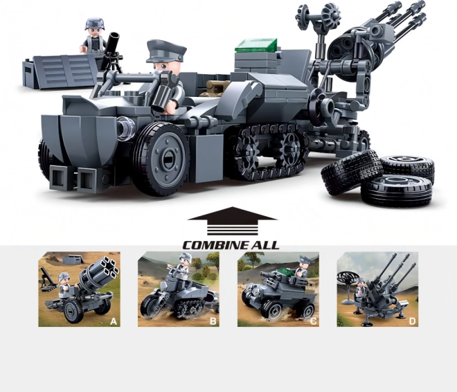 Táto stavebnica prináša komplexné pomôcky pre vytváranie vojenských scenárov s nemeckou protivzdušnou technikou. Hlavné časti zahŕňajú raketomet, protilietadlové delo, obrnené vozidlo a špeciálnu pásovú motorku. Kombinovaním môžete vytvoriť veľký model pojazdnej útočnej jednotky.