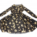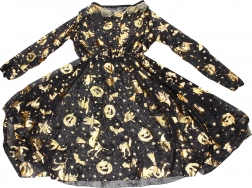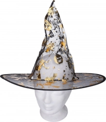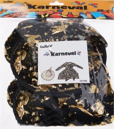 Elegantný karnevalový kostým čarodejnice v zlatej farbe obsahuje šaty a klobúk a je ideálny na karneval, maškarný bál aj Halloween. Dostupný vo veľkostiach S, M, L.